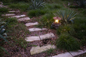 For several years, we tried to use solar lights to light the paths. It seemed like the right thing to do, but they consumed battery power fast and never really stayed charged in our shady yard. My brother - who owns a successful solar installation business in Seattle called A&R Solar (if you're in those parts) - and I talked at length about whether solar lights were more or less eco-friendly than hardwired low voltage lights. Though our power mix in Austin is largely coal, which is dirty, he said that the hardwired, low-voltage, longer-lasting lights were probably the best way to go in this case. They don't use much power, and batteries and throw-away solar lights might not be as eco-friendly as we think.